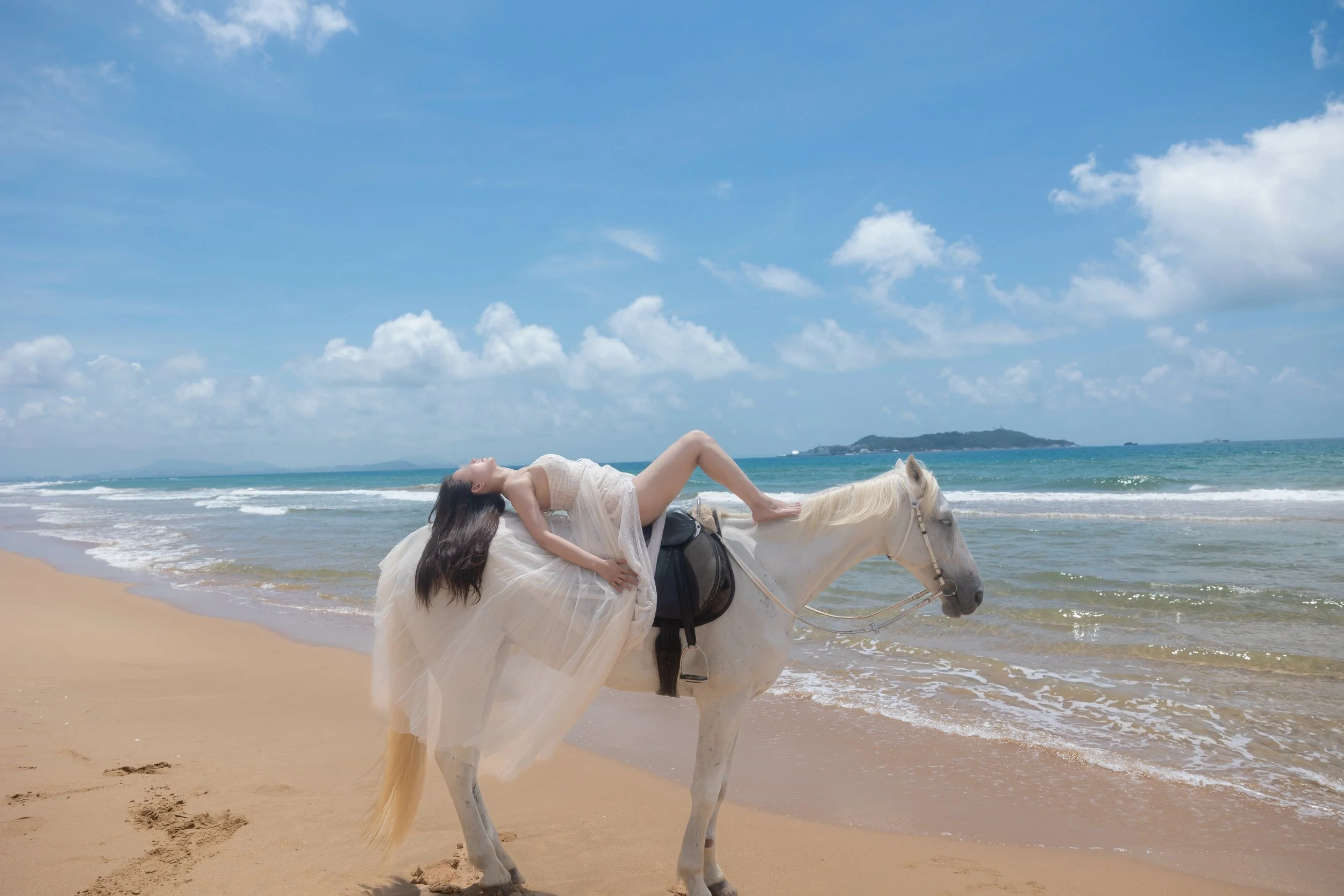 This Arabian horse used to be a racehorse and is now retired. It has long legs and makes me look petite, lol.